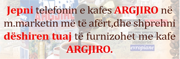 Për rastet, kur për arësyje të ndryshme, edhe pas kërkesës tuaj, nuk ka reagim pozitiv , atëherë ju mund të shfrytëzoni mundësinë që ju jep firma jonë nëpërmjet dyqanit tonë elektronik ose dhe nëpërmjet kontaktit telefonik, ku mund të porositni Kafe Argjiro, direkt nga ne, në çdo kohë dhe nga çdo cep i botës.